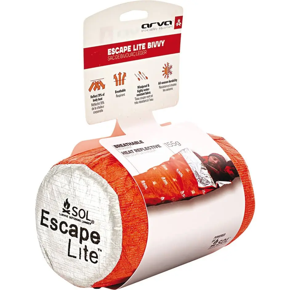 Il sacco bivacco ESCAPE LITE BIVVY rappresenta una vera e propria rivoluzione nel campo dei rifugi per il backcountry e risolve il problema principale della condensa prodotta dal calore corporeo. Con l’ESCAPE LITE la condensa non è più un problema e non dovrete più scegliere se stare all’asciutto o al caldo. L’esclusivo materiale sviluppato da SOL, esperti in equipaggiamento di emergenza per la sopravvivenza, permette all’umidità di fuoriuscire e tiene lontani neve, vento e pioggia. Riflette il 70% del calore corporeo per tenervi al caldo tutta la notte. Le cuciture impermeabili, la chiusura del cappuccio con coulisse, la cerniera laterale e l’ampio volume consentono di utilizzare questo comodo bivy sack come sovrasacco per il sacco a pelo per guadagnare 10°C di calore o come sacco a pelo leggero e confortevole fino a 10°C nelle notti estive. L’esterno arancione ad alta visibilità consente ai soccorritori di individuarvi facilmente in caso di emergenza, anche in zone con un’alta copertura arborea.